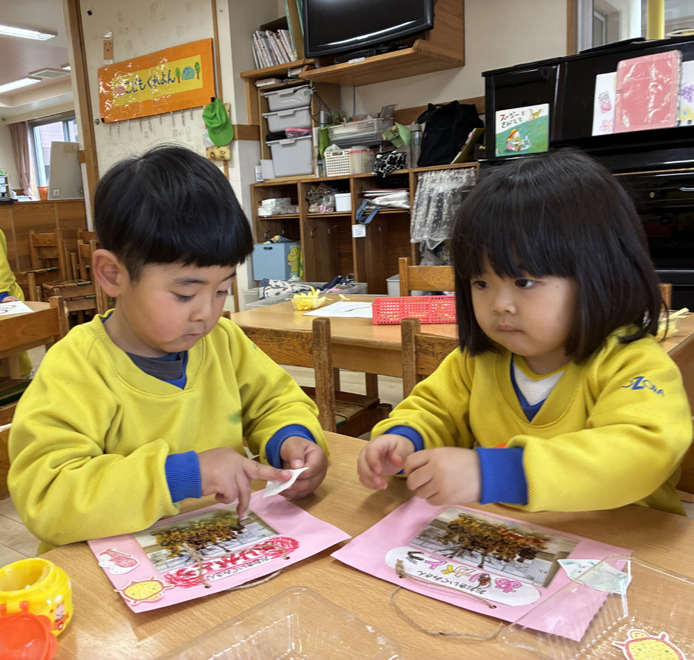 年少組・年中組の子どもたちは、2月末から心を込めて「写真立て」のプレゼント作りをスタート!