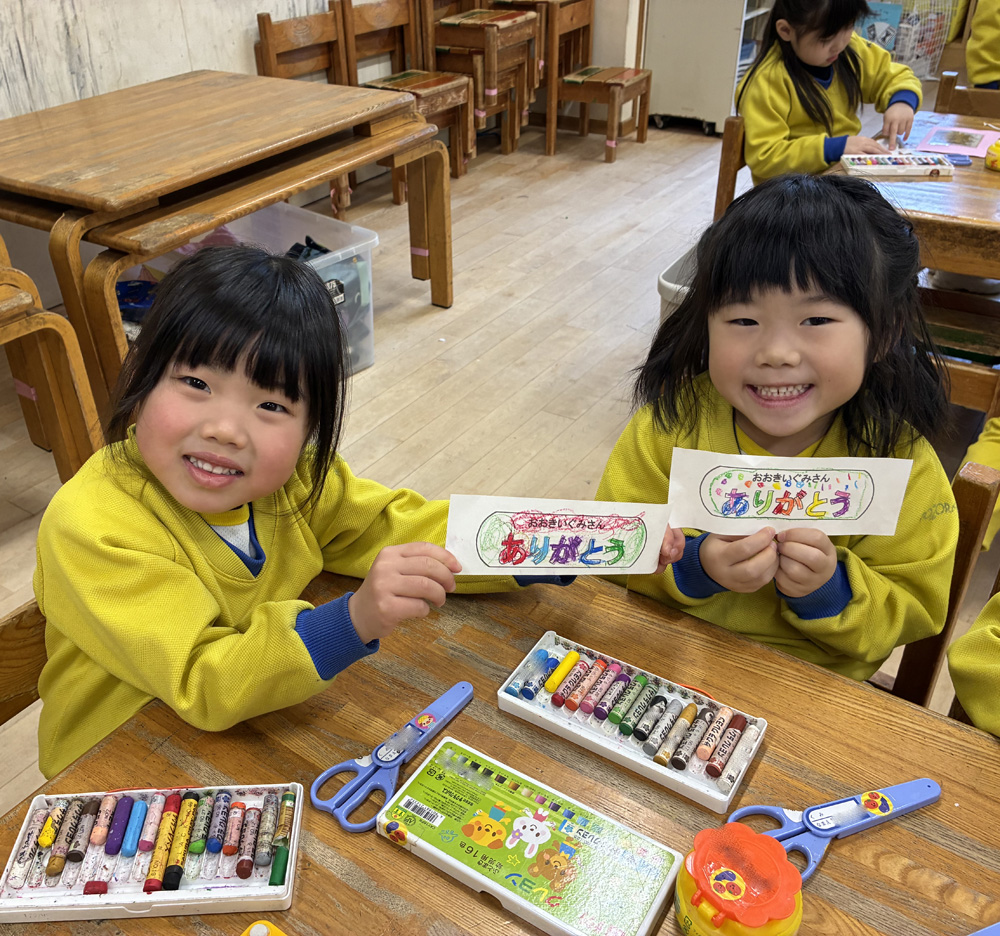 年長組の子どもたちからも、優しい言葉やお礼の気持ちが伝えられ、年長組での活動をまとめた「おおきいぐみブック」の贈呈も🎁