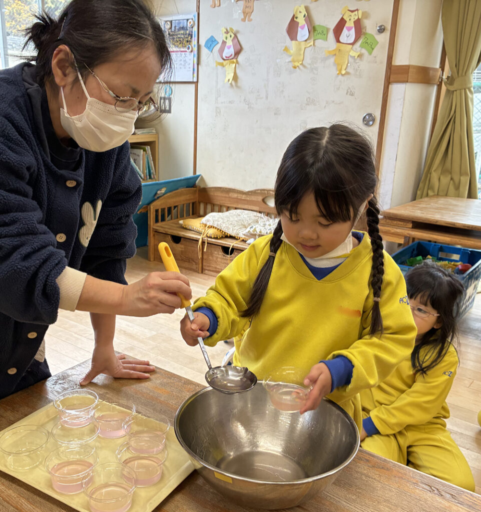 また、お別れ会の前日からはゼリー作りも行い、当日を楽しみに準備を進めてきました♪