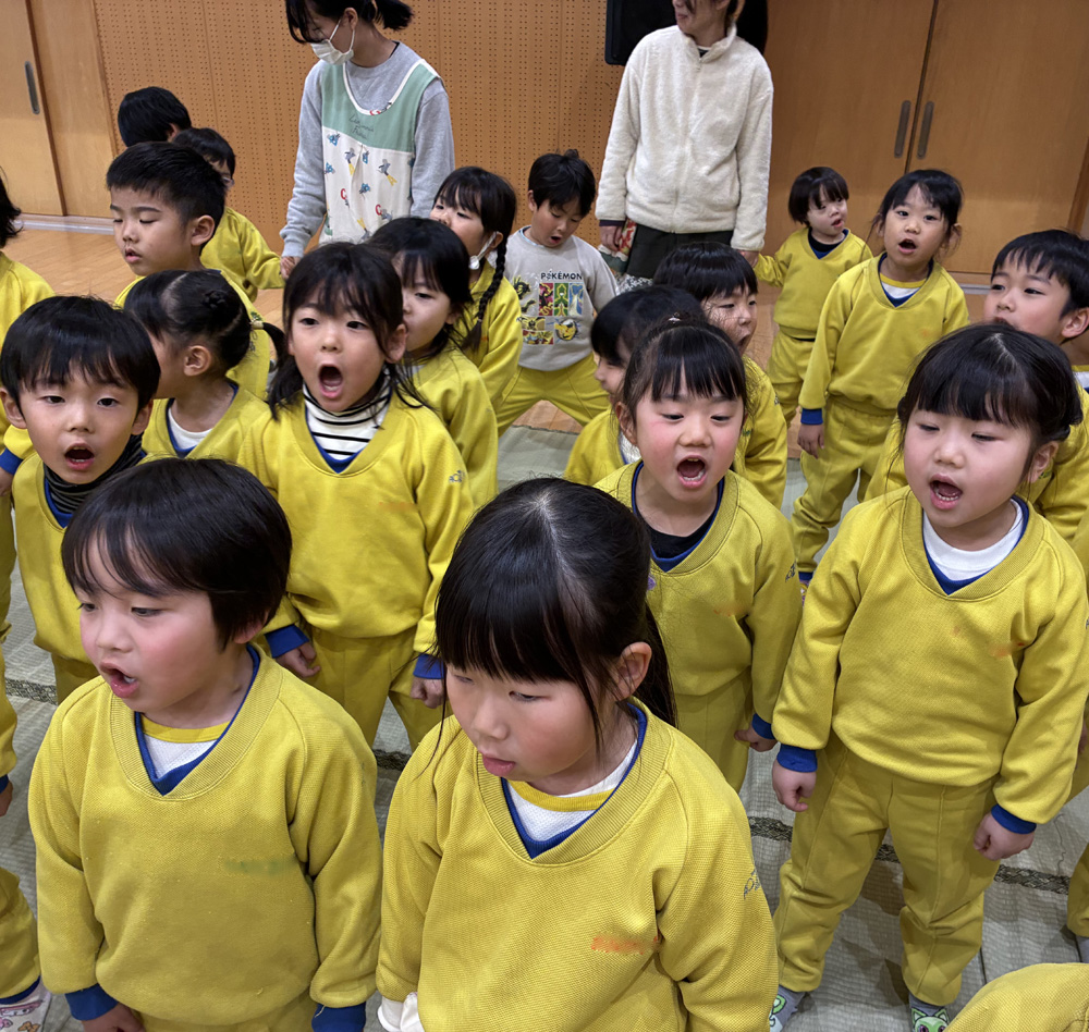 お別れ会当日は、これまでたくさん遊んでくれた年長組のお兄さん・お姉さんに向けて、歌のプレゼントを届け、温かい雰囲気の中で会が進みました。