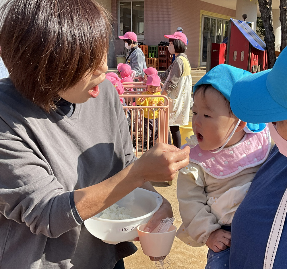 乳児部やどんぐり組のお友達も、間近でお餅つきを応援しましたよ!