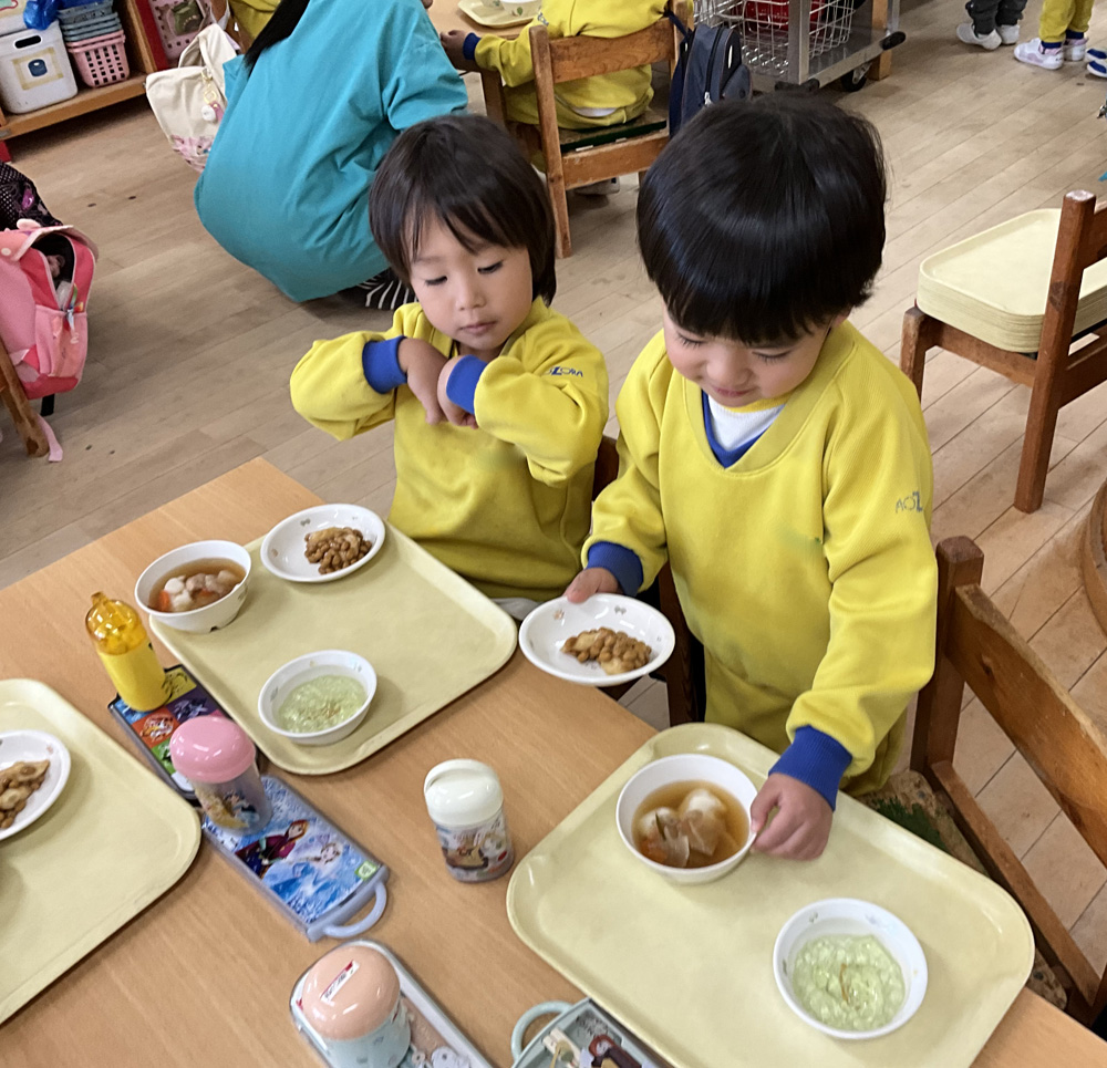 給食では、お雑煮と納豆餅をいただきました😋