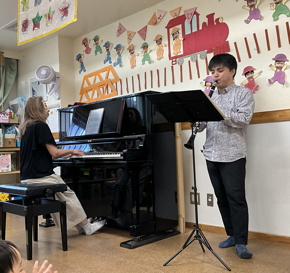 乳児部は保育室で、幼児部はホールで山形交響楽団員等の演奏家の方々の演奏を目の前で聴きます。
